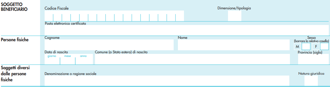 Nel quadro dedicato ai soggetti beneficiari si indicano i dati del richiedente.