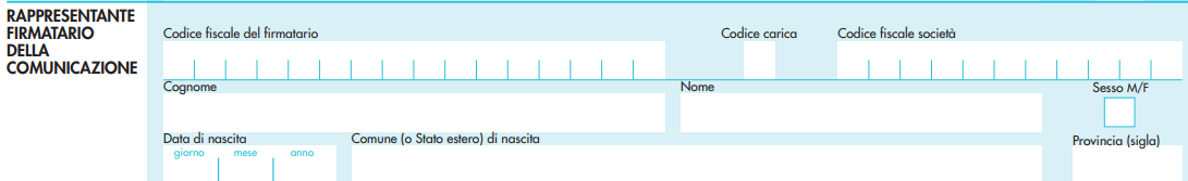 Nella casella Natura giuridica si indica il codice corrispondente alla natura dell’impresa o dell’ente, come indicato nelle istruzioni per la compilazione dei modelli Redditi. Nel quadro seguente si indicano i dati della persona fisica che firma la comunicazione.