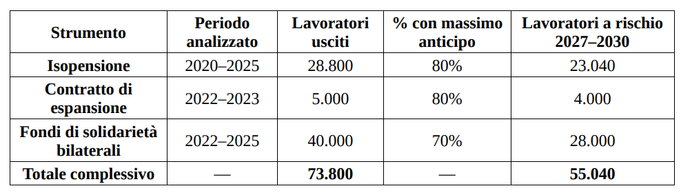 Un fenomeno quindi meno grave, ma comunque c’è una platea particolarmente ampia (in tutto 55mila lavoratori), che corrono un rischio concreto «pur a fronte di un’uscita dal lavoro pianificata e concordata nel pieno rispetto delle regole vigenti al momento della sottoscrizione degli accordi».
