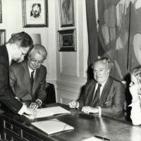 Nel 1992, Sophia Loren sale sul palco degli Academy Awards per ritirare il premio alla carriera e lo fa indossando un abito nero ricamato di cristalli e firmato dallo stilista. Ventisette anni dopo, nel 2019, i ruoli si ribaltano: è Valentino Garavani a ricevere il premio alla carriera, consegnato proprio da Loren. Tra le affinità più profonde c’è quella con Meryl Streep. Ne Il diavolo veste Prada – film cult che tornerà nelle sale a maggio con un sequel – il personaggio interpretato dall’attrice indossa creazioni firmate Valentino, che nel film compare anche in un cameo, interpretando se stesso.