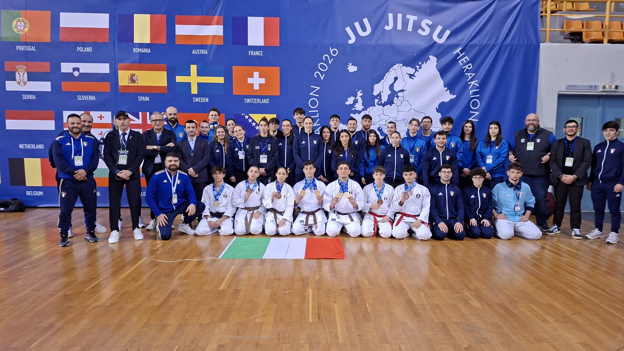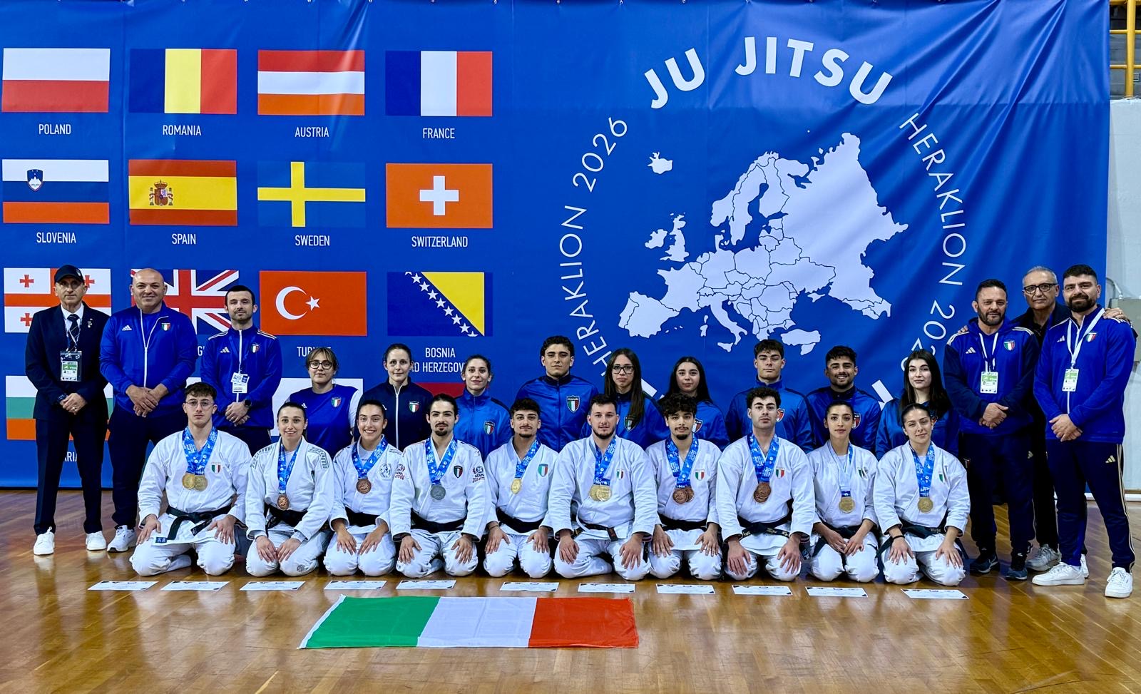 Roma, 17 marzo 2026 – Prosegue il cammino positivo del Team Italia ai Campionati Europei di Jujitsu 2026 in corso a Heraklion, in Grecia. Nella quarta giornata di gare la squadra azzurra ha conquistato 13 medaglie complessive – 5 ori, 3 argenti e 5 bronzi – portando il bottino finale a 22 e chiudendo al primo posto nella classifica per Nazioni nella categoria Adults.