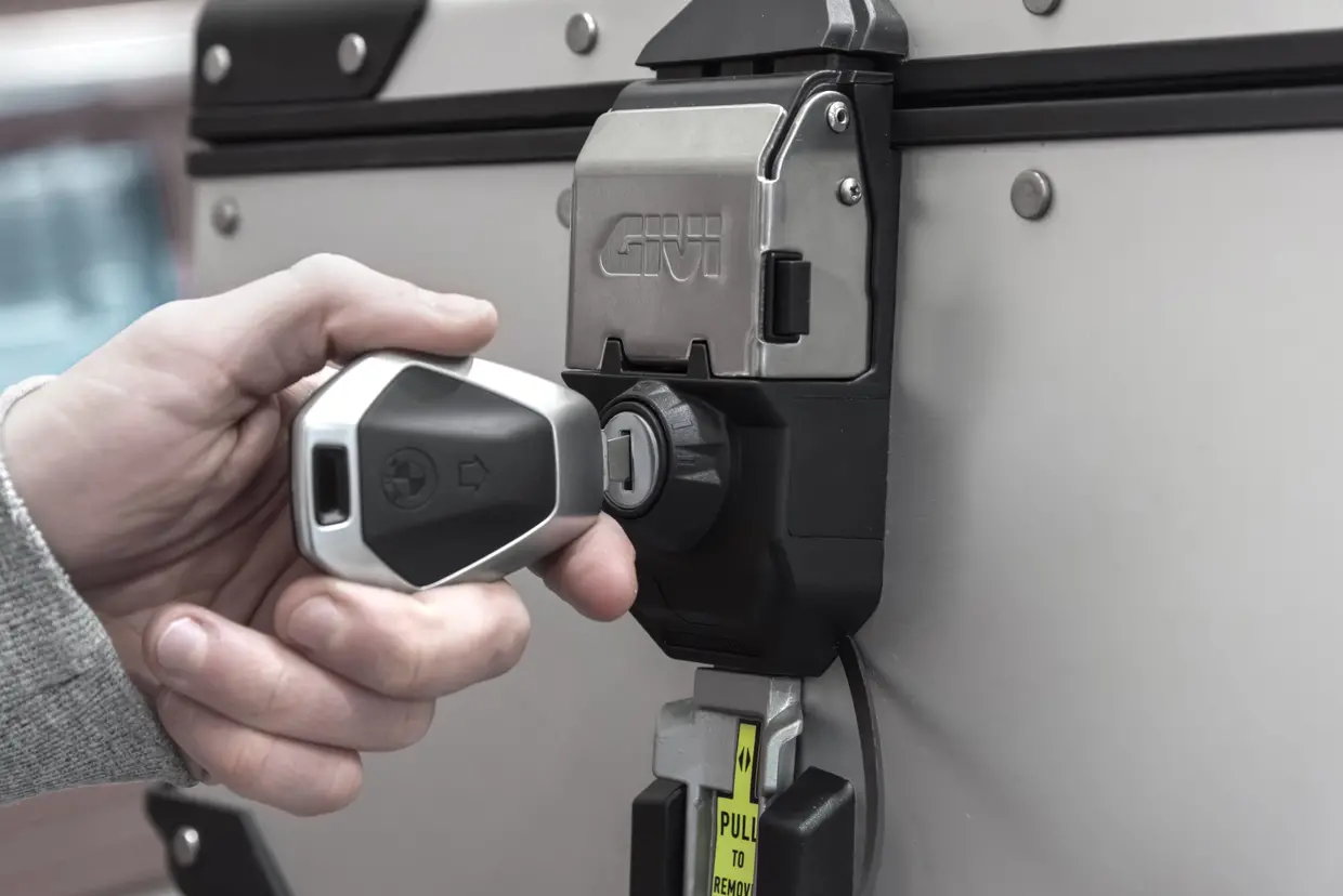Il kit serratura SLB101 è pensato per chi ha una BMW e usa le valigie in alluminio Outback Evo o le borse laterali Canyon Monokey Cam-Side (modelli GRT725 e GRT727). L'idea è semplice: codificare il cilindretto del kit in modo che funzioni con la chiave di accensione originale della moto. Niente più portachiavi ingombranti, tutto si gestisce con una sola chiave.