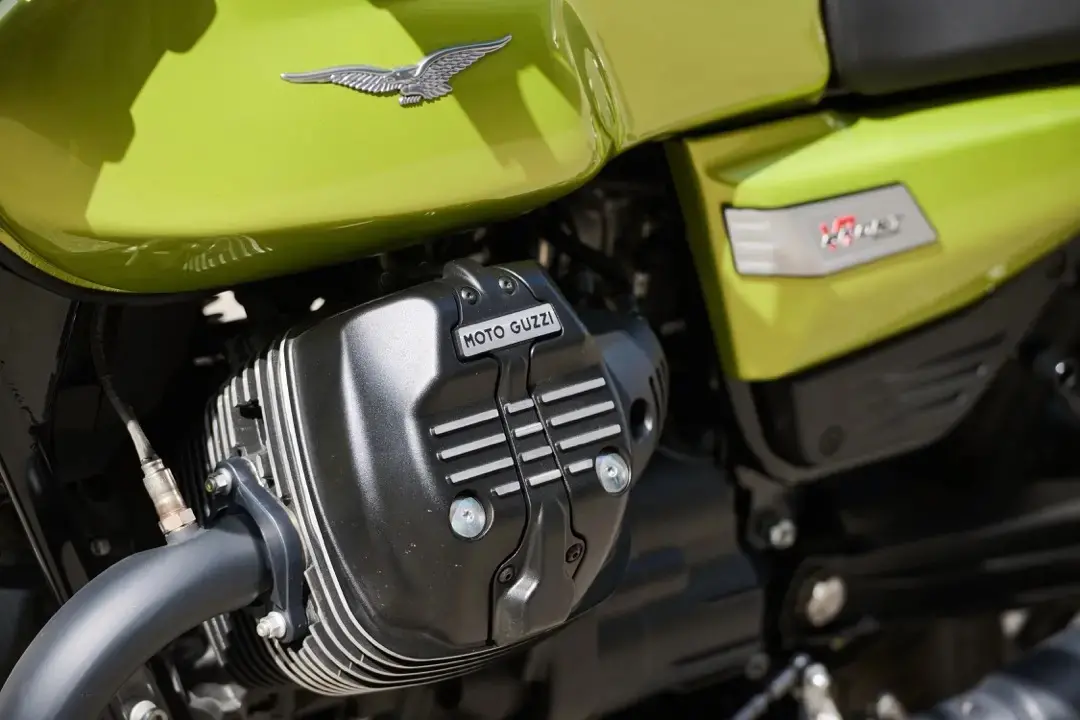 Il bicilindrico a V di 853 cm3 della V7 ha camme ridisegnate per un'alzata maggiore delle valvole, cassa filtro più grande (+ 27%) e un impianto di scarico con tre sonde lambda per rispettare la Euro 5+. Grazie a questi interventi Guzzi promette più grinta che, secondo i nostri rilevamenti si traduce in questi dati: