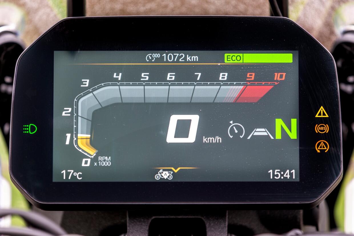 Un notevole passo avanti è stato fatto anche in ambito elettronico, con l’arrivo di numerosi ausili. Su tutti, i radar anteriore e posteriore, che consentono di sfruttare sistemi come il cruise control adattivo, la frenata automatica di emergenza e il monitoraggio dell’angolo cieco. Non mancano poi il controllo di trazione e l’ABS con funzione cornering, che variano a seconda della mappa inserita. Quattro i riding mode di serie: Road, Rain, Eco ed Enduro, ai quali si aggiungono il Dynamic Pro e l’Enduro Pro, entrambi disponibili come optional. Il tutto si gestisce da uno strumento TFT a colori da 6,5â€, in grado di connettersi al cellulare.