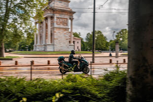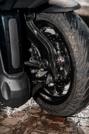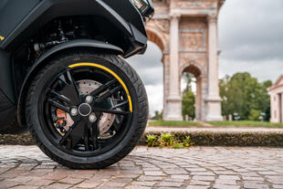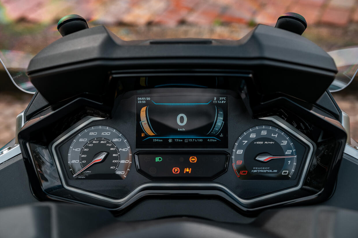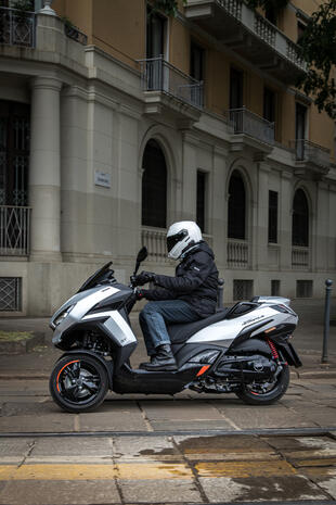 Il telaio è in acciaio e la sospensione anteriore a parallelogramma deformabile, mentre gli ammortizzatori sono regolabili nel precarico e in compressione. I freni sono a disco, ABS e controllo di trazione sono di serie. Il motore monocilindrico da 399 cm3 ha 36,5 CV e offre prestazioni sufficienti per cavarsela anche in autostrada e tangenziale. La dotazione di serie comprende parabrezza regolabile manualmente, accensione con telecomando smartkey, strumentazione che si connette al cellulare e navigatore. Nel retroscudo ci sono due vani, di cui uno con presa USB. La capacità di carico giustifica la sigla SW: oltre all’ampia pedana piatta (il Metropolis è l’unico 3 ruote ad averla) c’è un sottosella largo e poco profondo (ci sta una valigetta) ma collegato direttamente al baule da 54 litri (sufficiente per due caschi integrali). Si ha così a disposizione un maxi vano in grado di contenere oggetti lunghi anche 90 cm.