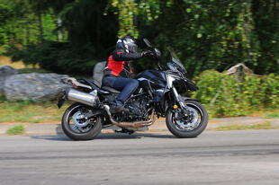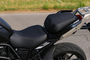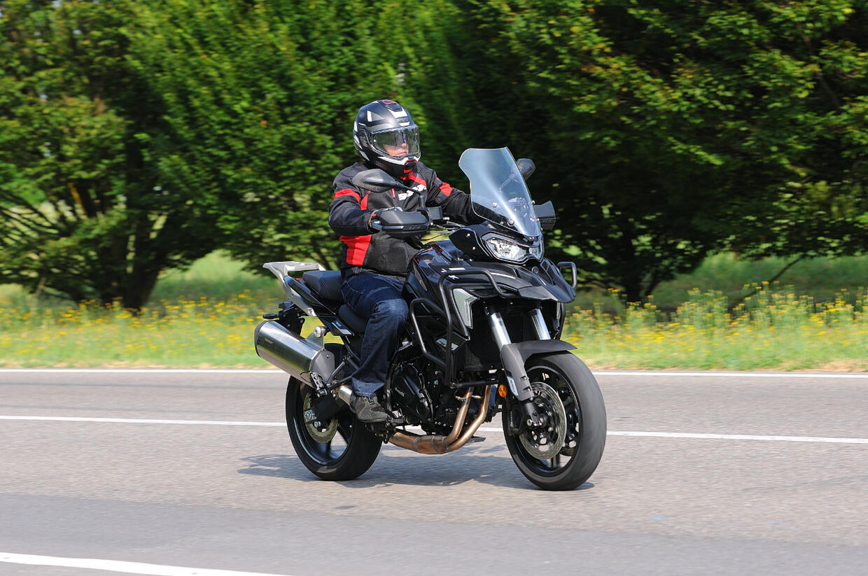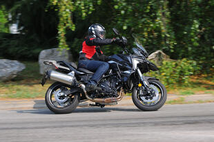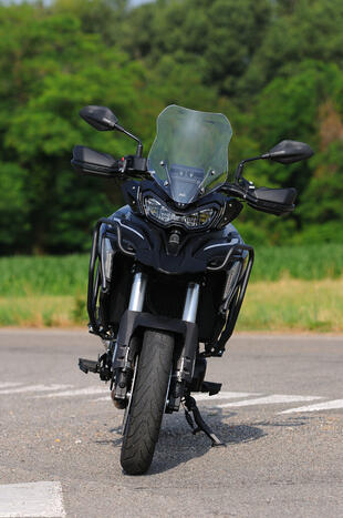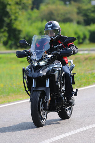In sella alla TRK 702 si sta comodi, la posizione di guida è naturale e la sella a 79 cm da terra la rende facile da gestire per piloti di ogni taglia. In movimento si apprezza invece la protezione del cupolino più ampio ed efficace. Il bicilindrico ha un’erogazione progressiva e lineare: ai bassi regimi non entusiasma, come in allungo (dove si sente qualche vibrazione su manubrio e pedane), mentre ai medi si rivela piacevolmente vigoroso, restando comunque sempre facile da gestire. La ciclistica si conferma efficace a patto di guidarla in modo “rotondoâ€: le sospensioni tarate sul morbido, perfette in viaggio o in città , non amano le manovre brusche e si può intervenire solo sul monoammortizzatore. Bene il cambio, morbido e preciso negli innesti, e anche la frenata: all’anteriore è un po’ poco grintosa all’inizio, ma è sempre modulabile e con po’ di decisione in più sulla leva è efficace in ogni situazione.