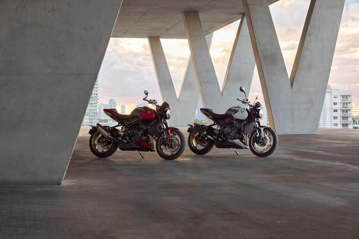 Confermati il telaio a doppia trave in alluminio e il motore tre cilindri in linea di 765 cm³, lo stesso propulsore che equipaggia le moto del campionato mondiale Moto2, di cui Triumph è fornitore unico dal 2019. In questa configurazione stradale eroga una potenza massima di 130 CV a 12.000 giri e una coppia di 80 Nm a 9.500 giri. Ci sono piattaforma inerziale, ABS e controllo di trazione cornering, oltre a diverse modalità di guida.