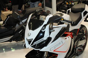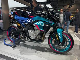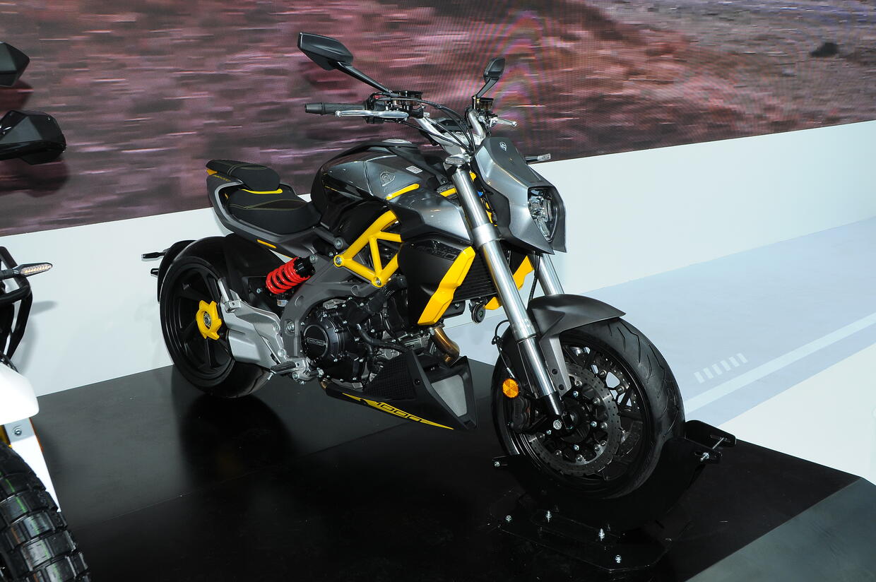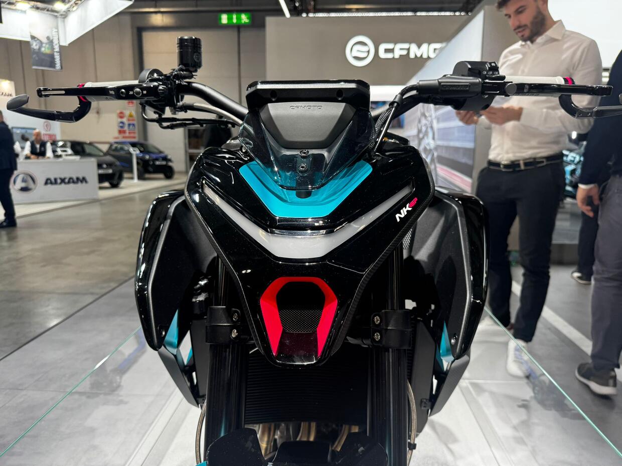 Allo stand CFMoto abbiamo potuto ammirare anche la versione GP della 675NK. Un esercizio di stile che mostra chiaramente gli obiettivi del marchio