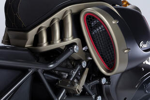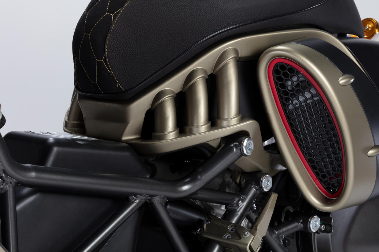 Ci sono anche richiami al mondo aeronautico con dettagli raffinati, come le prese d’aria sui radiatori laterali che si ispirano alle turbine dei jet. Anche il posteriore è molto particolare, c'è una struttura in alluminio che collega l'ammortizzatore (completamente regolabile) alla ruota, mentre il doppio scarico, firmato AkrapoviÄ, sfoggia della griglie che richiamano quelle dei cornetti d'aspirazione delle moto da corda di 60 anni fa.