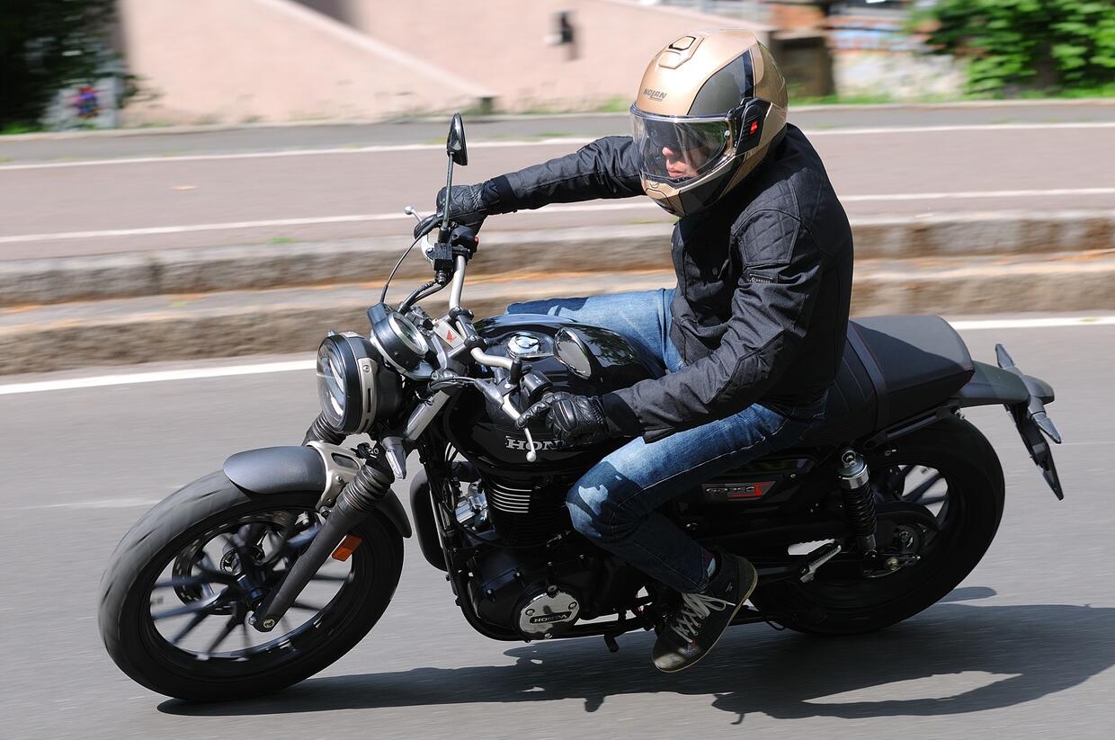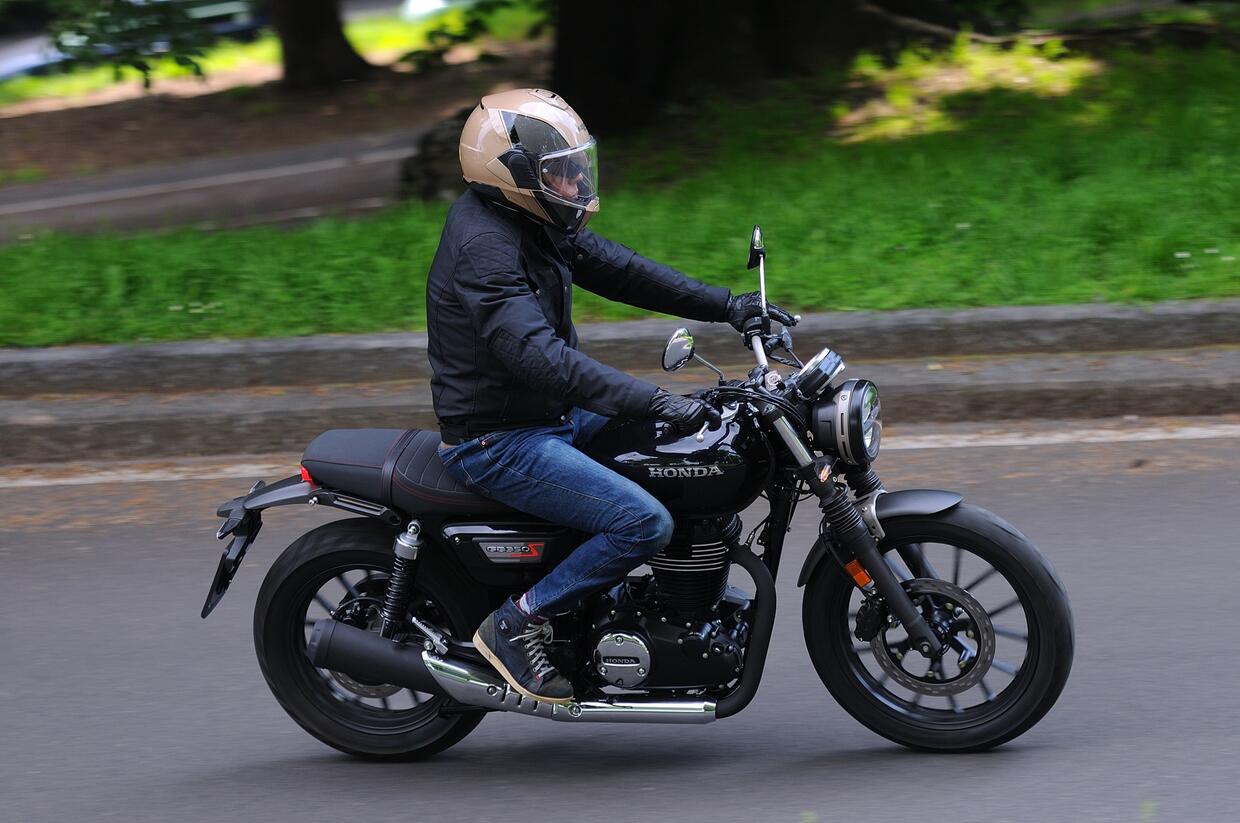 In movimento, la GB350 si dimostra una moto maneggevole e ben bilanciata: l’avantreno è preciso e stabile, mentre i pneumatici di primo equipaggiamento garantiscono un ottimo grip in tutte le situazioni, offrendo una risposta omogenea e rassicurante. Il motore è facile da gestire a tutti i regimi: è molto regolare ai bassi, ma dà il meglio ai medi, mentre agli alti perde un po’ di grinta. Inutile quindi insistere tirando le marce. Il cambio funziona bene: i rapporti sono ben spaziati, il comando è morbido in inserimento, ma leggermente ruvido in scalata. Le sospensioni assorbono bene le imperfezioni, ma prediligono una guida rilassata, penalizzando quella più sportiva.