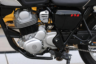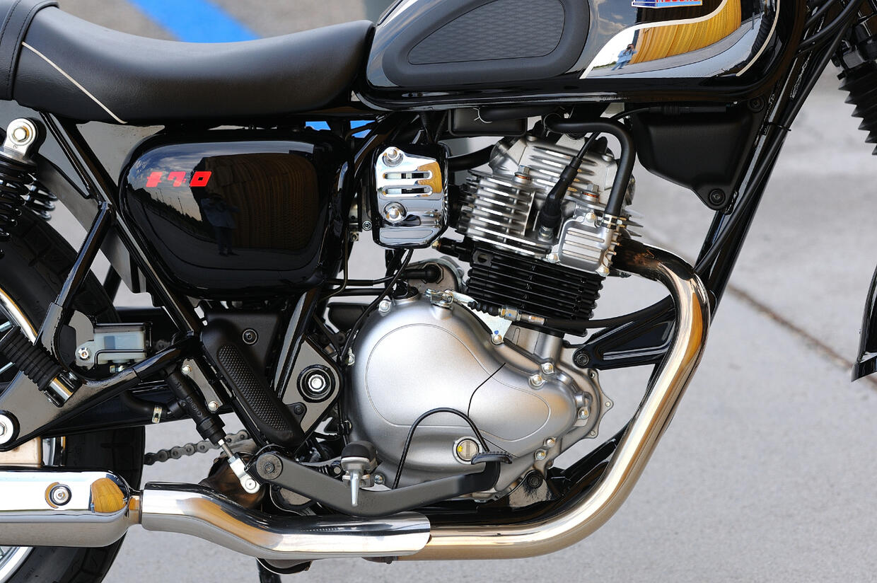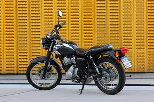 La meccanica e la ciclistica sono classiche quanto le linee. Sotto il serbatoio a goccia da 12 litri borbotta un monocilindrico raffreddato ad aria da 233 cm³, 18 CV e 18,6 Nm di coppia a 5.800 giri. Il telaio è un monoculla sdoppiato in tubi d’acciaio, la forcella ha steli da 37 mm con soffietti di gomma e i due ammortizzatori sono regolabili nel precarico molla. Poche le concessioni alla modernità : l’iniezione elettronica, l’avviamento elettrico, l’ABS, la presa USB e il piccolo display LCD su cui sono riportati l’ora e i km percorsi.