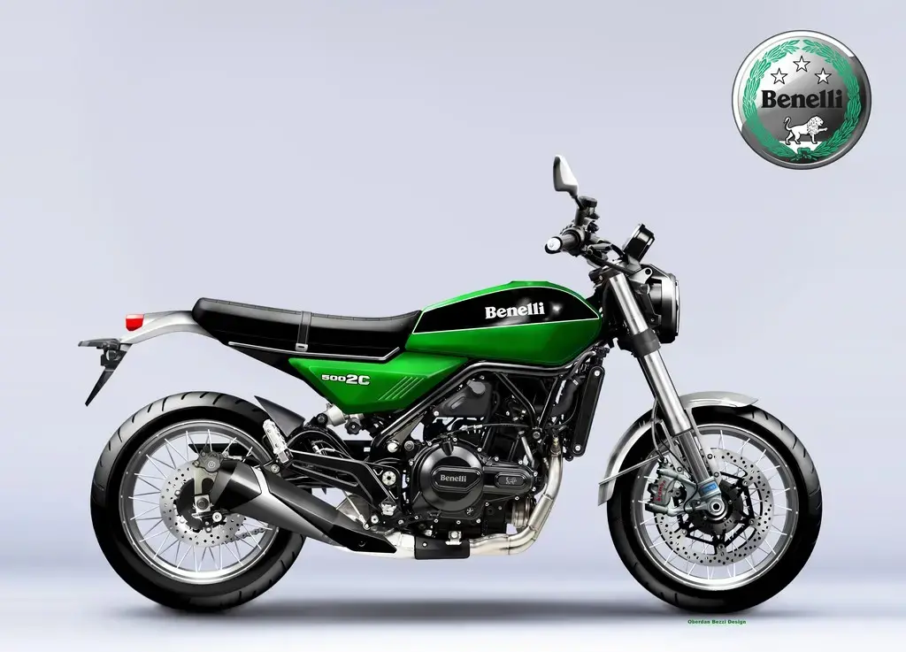 La seconda proposta per Benelli è la 500 2C, una dichiarazione d'intenti che riprende l'idea della leggendaria bicilindrica due tempi che ha fatto sognare i sedicenni degli anni 70 e 80. La 2C originale fece il suo debutto al Salone di Milano del 1971 e venne commercializzata dal 1972, rimanendo in produzione per oltre vent'anni. Era una moto senza fronzoli: potente per la categoria, bella da vedere, con cromature ben dosate e quella linea italiana che non si confondeva con niente altro. Con un peso di 127 kg e una posizione di guida non esasperata, era apprezzata per la stabilità e la maneggevolezza, oltre che per le finiture curate. Bezzi immagina di riportare in vita quella filosofia su base Leoncino 500, mantenendo il bicilindrico parallelo da 500 cm³ che la Casa marchigiana già produce. Una roadster dal design pulito, senza esagerazioni, riconoscibile come Benelli al primo sguardo.