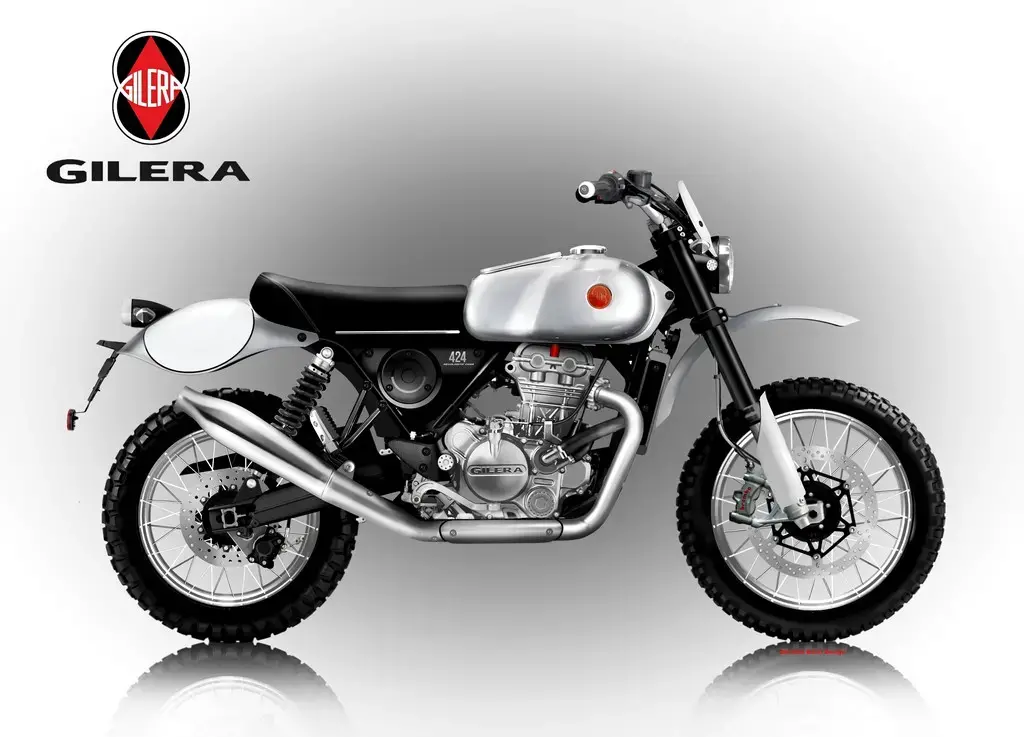 Tra i progetti Gilera spicca anche la 424 Regolarità Casa, una proposta nell'ambito del filone Modern Classic che secondo Bezzi sarebbe una credibile erede della 124 Regolarità di metà anni 60. Allora era un mezzo da competizione, quella pensata da Bezzi è un'affascinante crossover adatta a ogni scopo, facile da condurre, dalle ottime prestazioni, parca nei consumi e dall'immagine affascinante. Tradizionale nella parte ciclistica, punterebbe tutto sulla qualità costruttiva e sul fascino per giocarsela nel settore vivace delle scrambler. La 124 5V sia nella versione stradale che in quella da regolarità era di sicuro tra le moto più sognate dai ragazzi di metà anni 60. Esteticamente appagante e con prestazioni brillanti, la 124 ha lasciato ricordi indelebili a chi l'ha posseduta. Bezzi propone una rivisitazione moderna ma filosoficamente aderente al progetto originale: motore pronto e gestibile, leggera, ciclistica tradizionale, assetto di guida vagamente sportivo e una spolverata di grigio e argento a rendere il tutto ancora più vintage.