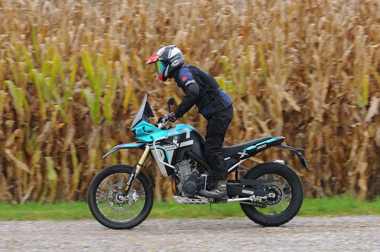 Sella stretta, manubrio largo, sovrastrutture ridotte all'osso e dimensioni generali davvero compatte fanno della Kove 800X Pro una adventure quasi specialistica. Su strada risulta agile e maneggevole, al netto degli pneumatici tassellati che limitano i feeling e le vere potenzialità della moto. Il motore offre una bella coppia ai medi e una buona propensione all'allungo, peccato solo per il marcato effetto on-off del comando del gas che tende a scomporre l’assetto quando si va ad agire sul gas. Le sospensioni infatti hanno una taratura piuttosto morbida e sono molto sensibili ai trasferimento di carico in accelerazione e in frenata.