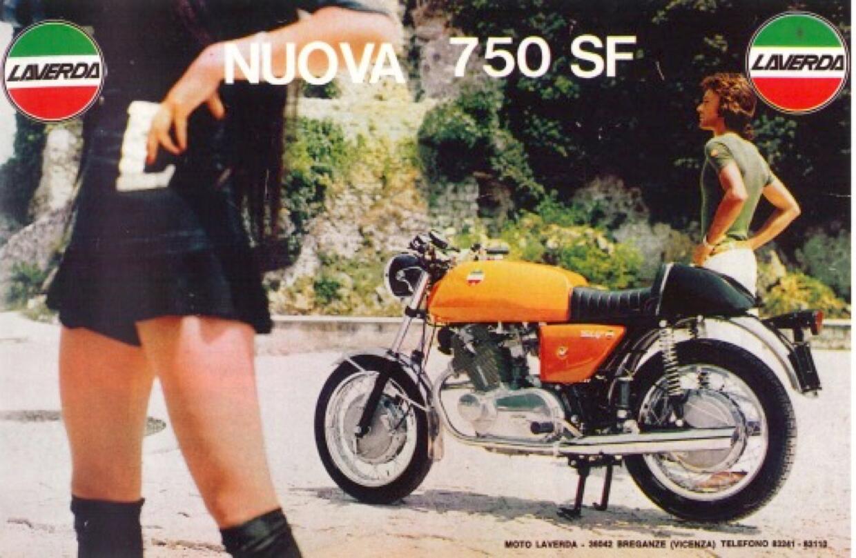 Questa è una delle moto più famose degli anni '70, riusciva a fondere perfettamente sportività e stile, tre caratteristiche fondamentali per una maxi di quel periodo. La SF viene presentata al Salone di Milano del 1969, debutta sul mercato nel 1970 e rimane in produzione fino al '75. Le linee erano eleganti, molto da inglese, infatti il telaio in tubi di acciaio manteneva sospeso un bicilindrico parallelo da 744 cm3 per 66 CV di potenza a 7.200 giri/min: il sound lo descrivono come irresistibile, la velocità massima invece era un po' più bassa della Ducati e della Guzzi, 192,6 km/h per la precisione. Una grande novità di questa moto era il nuovo freno davanti a tamburo: funzionava sì meglio di quello della S da cui deriva (e infatti SF sta per Super Freni), ma non era abbastanza per il segmento, quindi con la quarta serie del 1974 arrivò un disco singolo all'anteriore, aggiornato ancora l'anno successivo con un impianto ancora più adatto (due dischi davanti e uno dietro).