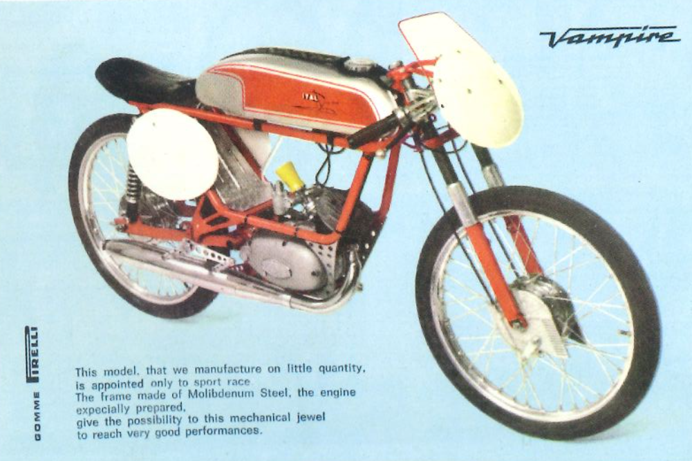 Già nel 1965, cioè ancor prima del Veloce, Italjet presenta alla stampa il Vampiro 50 da competizione. Costa 180.000 lire, è destinato alle gare Cadetti e monta un Minarelli elaborato da 7 CV alla ruota a 10.000 giri. Con Piero Cava in sella viene cronometrato sul chilometro lanciato a oltre 124 km/h. Il telaio, derivato da quello del Mustang ma profondamente rivisto, è realizzato in acciaio al cromo-molibdeno e pesa appena 4,8 kg.