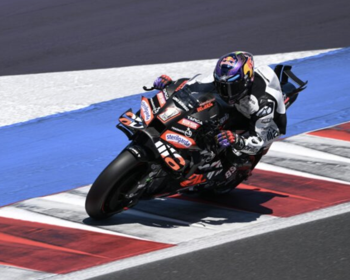 Aprilia a due facce, con lo spagnolo che vince, mentre il Bez si stende per ingordigia. Bagnaia cede all'ultimo giro a Martin, Marquez tira giù Di Giannantonio che stava andando forte
