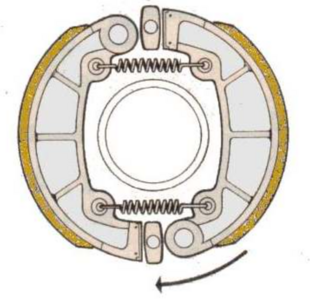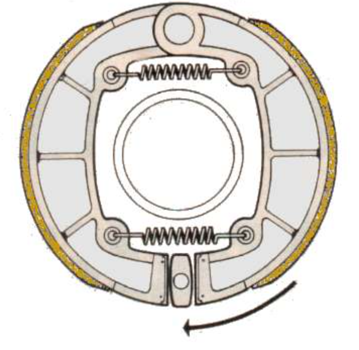 La configurazione piĂš diffusa nelle moto di serie fino agli anni Cinquanta fu il Simple Leading Shoe (SLS). In questo schema una ganascia è âtrainanteâ e lâaltra ârecedenteâ: ciò significa che la prima viene trascinata dalla rotazione del tamburo, aumentando cosĂŹ la pressione dâattrito; mentre la seconda contribuisce in misura minore alla frenata.