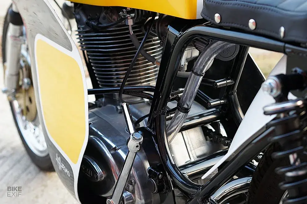 La chiave di tutto è la posizione di guida. Il manubrio in alluminio è stato ribassato e riposizionato, così il peso del pilota si sposta sull'avantreno, con il busto più proteso rispetto alla versione standard. Non è una posizione da pista, ovviamente, ma basta per cambiare il feeling: l'anteriore si sente di più e i cambi di direzione, sulla carta almeno, risulteranno più rapidi. Sotto non cambia nulla: il monocilindrico Sherpa da 452 cm³ raffreddato a liquido eroga sempre 40 CV e 40 Nm.