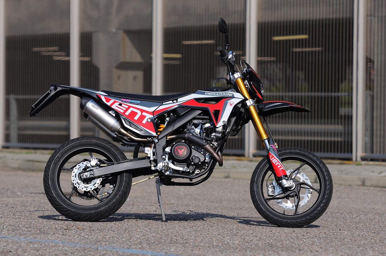 Vent Moto con la Derapage 125 è pronta a realizzare i sogni dei ragazzi alla ricerca di una moto di carattere. La motard della casa italiana ha tutto quello che serve per piacere, motore monocilindrico 100% italiano, look aggressivo e dotazione tecnica di qualità . Vediamo allora come è fatta e come va.