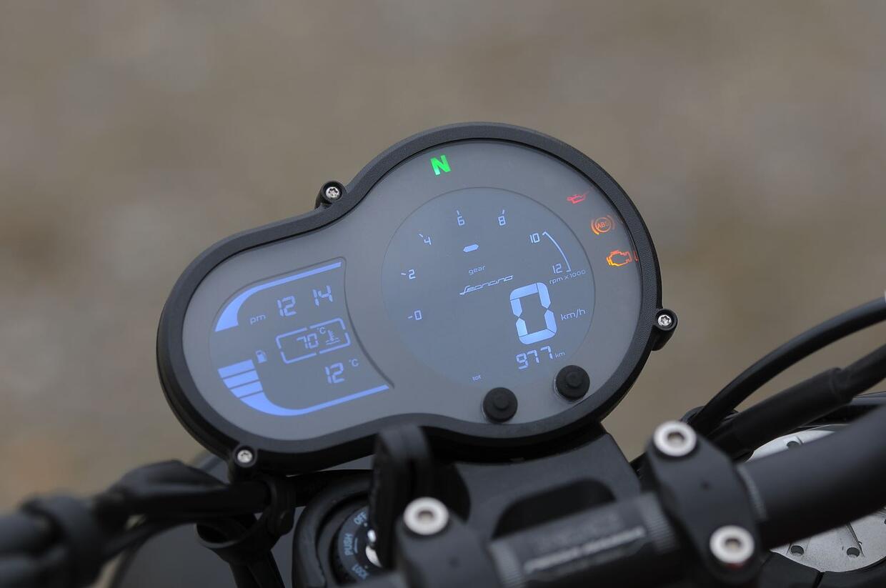Sotto al mento del pilota trova spazio un bel cruscotto digitale con display TFT a colori di 5 pollici che offre un discreto numero di informazioni come la marcia inserita, l'orario, i livelli di temperatura e carburante, la mappa di erogazione scelta e i km parziali/totali. Tuttavia alcuni caratteri sono un po' piccoli e quindi non facilissimi da leggere. Ai lati del display troviamo le spie di servizio.