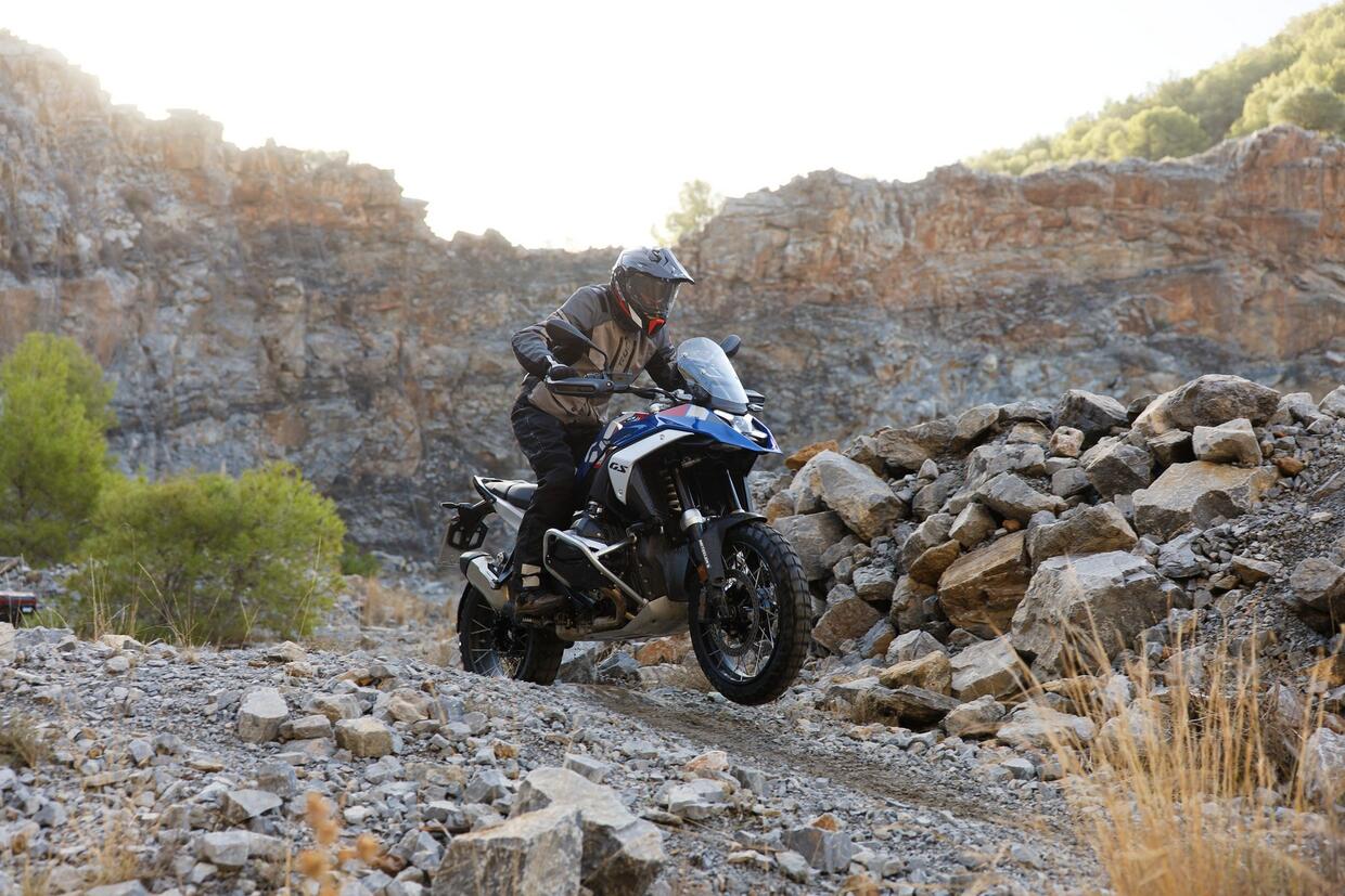 Con la nuova GS, adeguatamente gommata, ci si diverte. Il bilanciamento è eccellente e la risposta ai comandi del pilota è immediata: insomma, è veramente esaltante da guidare in piedi. Il Telelever digerisce bene le asperità e offre una sensazione di grande controllo anche a chi ha meno esperienza. La moto è reattiva e, anche di fronte a ostacoli impegnativi come i sassi smossi, mantiene un assetto composto e stabile. Poi c’è il boxer, che esalta anche ai bassi in seconda e terza, supportato da una frizione ben modulabile: nel primo attacco è molto morbida e si aziona anche con un dito! A punto l’elettronica, pronta a intervenire quando c’è bisogno, in maniera non eccessiva per chi ha dimestichezza con il fuoristrada.