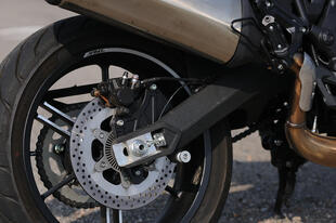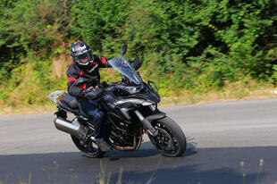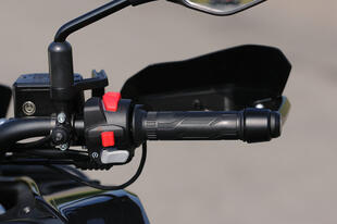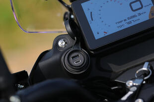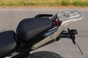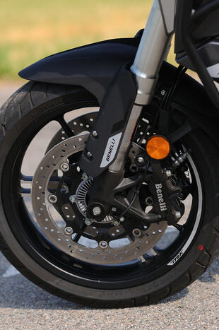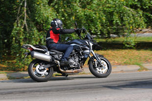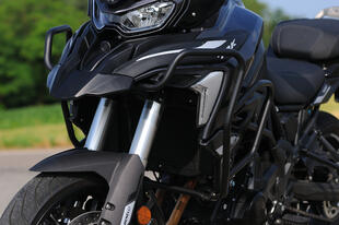 L'impianto frenante Nissin, con doppio disco anteriore da 310 mm, si comporta bene. Lo spazio di arresto rilevato di 40,5 metri da 100 km/h è un buon dato per la categoria. Nella guida reale, questo si traduce in una frenata potente, precisa e ben modulabile, che infonde sicurezza anche quando si alza il ritmo e si cerca una guida più aggressiva.