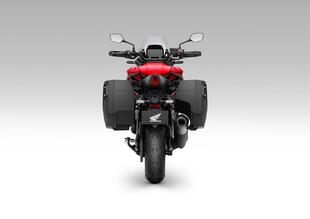 L’estetica è caratterizzata da linee molto affilate con i fianchetti che si estendono in avanti, mentre al centro del frontale troviamo il faro a LED. Il parabrezza è regolabile manualmente su 5 posizioni, mentre la carenatura ai lati è piuttosto ampia. Rispetto alla Hornet i tecnici giapponesi hanno rivisto il telaietto posteriore, irrigidendolo e allungandolo così da incrementarne l’abitabilità e la capacità di carico. Nella dotazione di serie ci sono le valigie laterali (37 litri per quella di sinistra e 28 litri per quella di destra), i paramani, il cavalletto centrale, le manopole riscaldate, il cruise control, il cambio elettronico bidirezionale e il sistema di accensione con telecomando keyless.