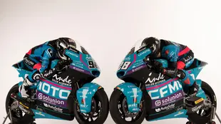 I colori son quelli dei team CFMoto Aspar che corrono in Moto2 e Moto3
