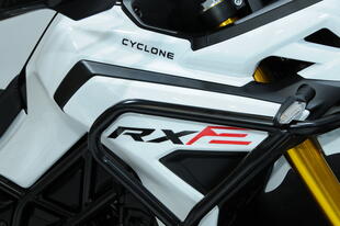 La Cyclone RX2 è proposta con un’impronta chiaramente adventure: design ispirato al mondo “mecha†(per chi fosse digiuno di cartoni animati giapponesi, si tratta dei mega robot giganti comandati da un umano, per intenderci Mazinga, Ufo Robot et similaria) e ciclistica da offroad, con sospensioni a lunga escursione, luce a terra elevata, scarico alto.