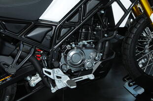 La moto anglo-indiana è spinta da un propulsore bicilindrico parallelo a quattro tempi di 585 cm³ con distribuzione doppio albero a camme in testa, raffreddamento a liquido e l’albero motore con le manovelle a 270° che danno un’erogazione più corposa e più personale. È un’unità sviluppata per avere un tiro generoso e un carattere docile, che si può adattare a seconda delle necessità selezionando diverse mappature. Il cambio è a sei rapporti, con quickshifter bidirezionale.