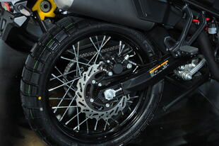 Il telaio in tubi d’acciaio è dotato di una sospensione posteriore monoammortizzatore centrale con forcellone a due bracci e forcella telescopica convenzionale; ci sono un disco freno a margherita all’anteriore e uno al posteriore, controllati da ABS a doppio canale, e le ruote sono a raggi, rispettivamente di 19†con copertura 100/90 e 17 “con copertura 130/80.