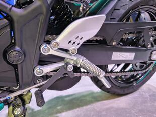 Motore racchiuso all’interno di un telaio a diamante in acciaio, al quale sono abbinate una forcella a steli rovesciati di 37 mm non regolabile e al retrotreno un monoammortizzatore Yu An regolabile nel precarico. I cerchi sono entrambi in lega leggera e di 17â€, con pneumatici stradali nelle misure 110/70 e 150/60. L’impianto frenante, sorvegliato da ABS bicanale, vede un disco di 320 mm all’avantreno e uno di 220 mm al retrotreno. Interasse, avancorsa e inclinazione del cannotto di sterzo valgono rispettivamente 137,4 cm, 99 mm e 24.5°.