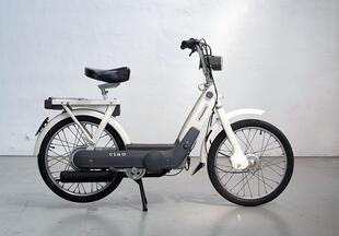 Impossibile trascurarlo anche se stiamo parlando di moto, perché in questo momento sul mercato dell’epoca il signore dei ciclomotori è uno dei veicoli più ricercati. Chi, tra gli “antaâ€, non ha un ricordo legato al ciclomotore progettato dall’ingegner Bruno Gaddi? È rimasto sulla breccia la bellezza di 39 anni, dal 1967 al 2006, rivoluzionario all’esordio e un classico quando uscì dai listini. Costi di produzione e peso ridotti al minimo, stava sotto i 40 kg a secco, saliti poi a 43, e a 48 nelle versioni con miscelatore; il telaio era in lamiera d’acciaio, rigido al posteriore e dotato di una modesta sospensione anteriore a biscottini: il comfort era affidato al molleggio della sella. Freni a tamburo davanti e dietro, il motore era monocilindrico orizzontale a due tempi di 49,77 cm³, con distribuzione regolata da una spalla dell’albero motore e raffreddamento ad aria forzata per mezzo di una ventola ricavata sul volano magnete. Avviamento a pedali, che erano utili anche in salita perché il variatore c’è soltanto in alcune versioni. La velocità era intorno ai 45 km/h e con quella ciclistica andava bene così, ma molti preparatori si sono cimentati realizzando scarichi ad espansione e cilindri per incrementarne le prestazioni.