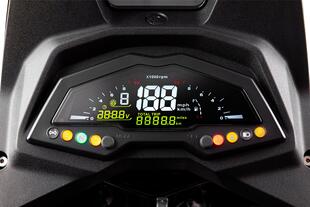 Le dimensioni generose (2.200 mm di lunghezza, passo da 1.545 mm, altezza sella 755 mm) si accompagnano a un equipaggiamento particolarmente ricco: radar a onde millimetriche da 77 GHz, doppia dashcam 1080p, ABS, controllo di trazione, parabrezza elettrico, sella e manopole riscaldate, oltre al cruscotto che si connette al cellulare che si può gestire anche con comandi vocali e tramite app.