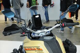Si tratta di una crossover-adventure piacevole nella linea, con forme muscolose all’avantreno ma fianchi snelli, per poter concedere la giusta libertà di movimento quando si guida in piedi. Il telaio è un’unità in tubi di acciaio a sezione rettangolare, ed è sostenuto da raffinate sospensioni semiattive. I cerchi sono a raggi tubeless di 19 pollici l’anteriore e 17 il posteriore, mentre l’impianto frenante vede all’avantreno una coppia di dischi di 310 mm di diametro con pinze radiali a quattro pistoncini. Al posteriore invece troviamo un disco di 220 mm con pinza flottante a due pistoncini. Interasse, inclinazione del cannotto di sterzo e avancorsa valgono rispettivamente 1.531 mm, 26,5° e 115 mm.