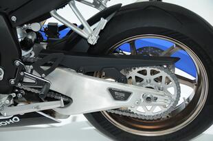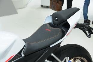 Al posteriore troviamo invece un disco singolo di 220 mm con pinza a doppio pistoncino. I cerchi sono entrambi in alluminio di 17 pollici, con pneumatici Pirelli di sezione sportiva: 120/70 all’anteriore e 200/55 al posteriore. L’interasse misura 1419 mm, mentre l’inclinazione del cannotto di sterzo di 24,2° proietta un’avancorsa di 101 mm. Non sappiamo ancora nulla riguardo alla dotazione elettronica ma è probabile che sia completissima.