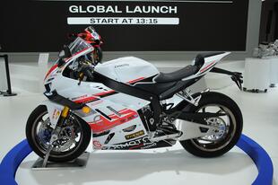 È anch’essa spinta dal tre cilindri in linea di 819 cm³, che in questa configurazione eroga ben 145 CV di potenza massima a 12.500 giri, per un peso di 186 kg. Il telaio è un’unità a doppio trave abbinata a sospensioni KYB completamente regolabili. Di qualità l’impianto frenante, con pinze anteriori radiali a quattro pistoncini Brembo M50 che lavorano dischi di 330 mm di diametro.