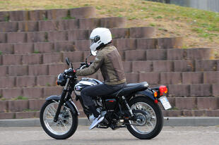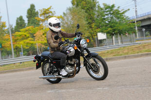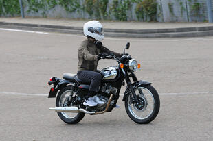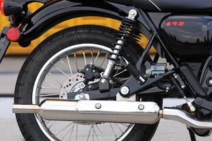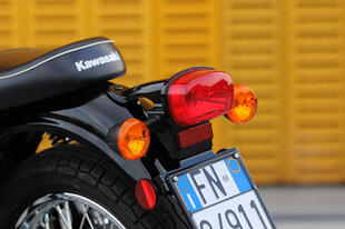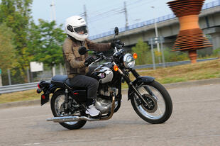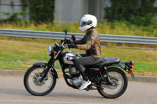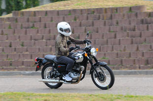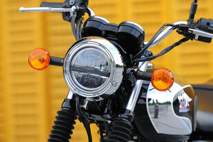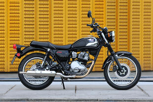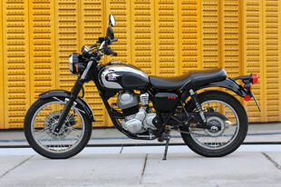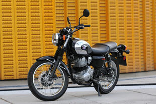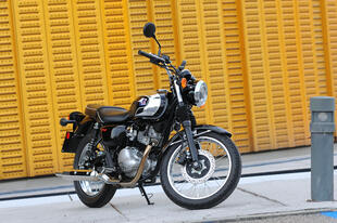 Lo storico marchio giapponese Meguro è tornato in vita grazie a Kawasaki (che aveva acquisito l’azienda nel 1964) con questa bellissima S1: una piccola stradale derivata dalla W230, ma nettamente più lussuosa e ispirata alla Meguro SG (uno dei modelli più famosi della casa). La S1 è una moto compatta, con una sella a soli 74 cm da terra e un peso di 143 kg in ordine di marcia, inferiore a tutte le concorrenti. Lo stile è classicissimo: parafanghi ampi e protettivi, terminale di scarico “a bottigliaâ€, cruscotto con due strumenti analogici, cerchi a raggi con ruota anteriore da 18â€, pneumatici stretti, pinza assiale a due pistoncini, fari (a LED) e indicatori di direzione tondi, così come gli specchietti. Le finiture sono “ricche†e curate fin nei minimi dettagli, quanto e forse più che sulla “sorella maggiore†W800 (anch’essa ispirata alle Meguro anni 60).