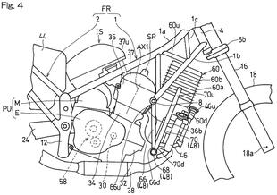 Nel brevetto depositato il serbatoio è spostato nello spazio rimasto libero sotto la sella, e si fa riferimento specifico a pedane che corrono lungo i lati del motore e si estendono fino al perno del forcellone: fa pensare ad uno scooter anche se il disegno sembra quello di una moto. Il serbatoio è sagomato in modo da poter ospitare un casco, e anche questa è una scelta da scooter. Non è la categoria di veicoli più cara alla Kawasaki, che non ne ha quasi mai prodotti limitandosi ad un’uscita con scooter da Kymco leggermente rivisitati sul piano estetico; ma i tempi cambiano e un veicolo utilitario in grado di percorrere un certo chilometraggio in “solo elettrico†potrebbe incontrare grosso successo tra i pendolari di lungo corso che devono accedere ai centri storici.