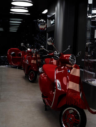 Certamente non è così che vi immaginate la slitta di Babbo Natale ma Vespa è anche questo: un modo differente e originale per giocare con le feste in arrivo. Approfittatene! La slitta con le inconfondibili forme del famoso scudo, trainata da cinque Vespa Primavera in livrea RED, è esposta a Milano e potete salirvi sopra per fare un selfie natalizio da mandare agli amici. Tutto in una dolcissima atmosfera natalizia ma con gli elementi stilistici che fanno parte dell’identità stessa della Vespa, linee morbide ed accoglienti e una piacevole sensazione familiare.