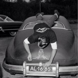 Per quanto il suo nome faccia drizzare le antenne ai bikers, certamente una delle imprese che ancora oggi ne alimentano il mito si lega alle quattro ruote. Il modo in cui Von Dutch ha saputo lavorare a mano libera la leggendaria Pontiac Firebird “Blue Velvet†del 1979, ornandola con due strisce parallele perfettamente "tirate" - lunghe più di 5 metri per lato - racconta molto della sua abilità e meticolosità .