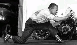 Al compimento dei 15 anni, "Dutch" decide di abbracciare la sua altra passione: la meccanica. Trova lavoro nell'officina di motociclette di George Beerup e risale proprio a quel periodo di formazione il primo scatto di Kenny su una moto: è il 1946 e la protagonista è una Indian Scout con manubrio alto, forcella a balestra, doppi scarichi e un'elegante serbatoio cromato di fattura inglese.
