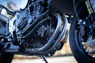 Nell'immagine i nuovi collettori di scarico in titanio con finitura sabbiata, cha si abbinano al terminale di scarico