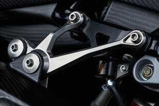Il telaio perimetrale è stato modificato con un cannotto di sterzo allungato di 25 mm, che aumenta la rigidità dell'avantreno e migliora la stabilità generale. Manubrio, cannotto di sterzo e corona posteriore passano all'alluminio per ridurre il peso. La nuova piastra superiore offre quattro posizioni per gli attacchi del manubrio (standard, 10 mm avanti, 10 mm indietro, 20 mm indietro) più due altezze disponibili e regolabili tramite boccole dedicate (standard o +5 mm), per adattare la posizione di guida alle diverse esigenze.