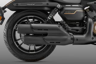 Lo stile della SRV 400 VS è in chiave bobber, caratterizzato dal serbatoio "a goccia" da 16 litri, dalle ruote da 16", dalla generosa protezione sugli steli della forcella e dal doppio scarico sovrapposto sul lato destro.