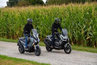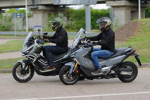 Sono molti gli "scooter adventure" nei listini, ma pochi sono realmente validi anche fuori dall'asfalto come lo Zontes 368G e il SYM ADX TG 400 in queste pagine. Entrambi hanno ciclistica da off-road, gomme adatte allo sterrato e soluzioni tecniche più raffinate di quelle del solito scooterone: l'ADX ha ruote da 15" e 14", motore montato centralmente e la trasmissione a catena, mentre il 368G sfoggia protezioni tubolari a vista sullo scudo, ruota anteriore da 17" e posteriore da 14" a raggi tubeless, motore posteriore e trasmissione a cinghia.