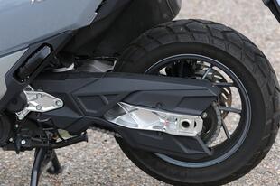 La ciclistica del 368G si caratterizza per la scelta insolita del diametro delle ruote: 17" l'anteriore 14" la posteriore, con cerchi a raggi tubeless. Diametri maggiori rispetto agli standard nel mondo scooter, pensati per offrire stabilità e direzionalità anche sullo sconnesso. La forcella con steli rovesciati di 41 mm e 150 mm di escursione è regolabile nell'idraulica in compressione e ritorno; dietro lavorano invece due ammortizzatori con 114 mm di corsa regolabili in precarico ed estensione. Il motore è un monocilindrico quattro tempi di 368 cm³ con raffreddamento a liquido e iniezione elettronica. La potenza massima dichiarata è di 38,8 CV a 7.500 giri/min, mentre l'impianto frenante vede anche in questo caso due dischi. L’anteriore misura 300 mm e il posteriore 240 mm.