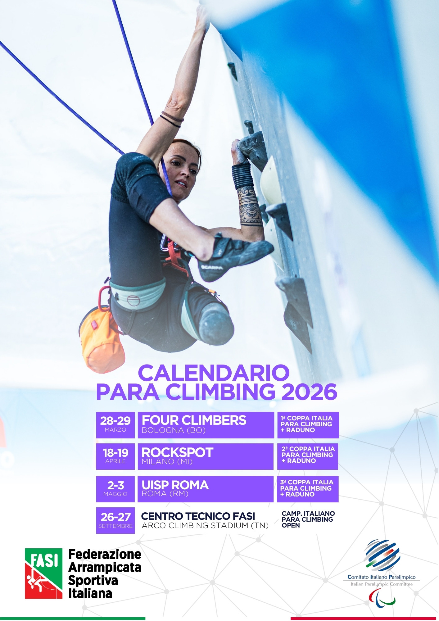 Online il calendario delle competizioni Nazionali per le specialità boulder, lead speed e paraclimbing della stagione sportiva 2026.