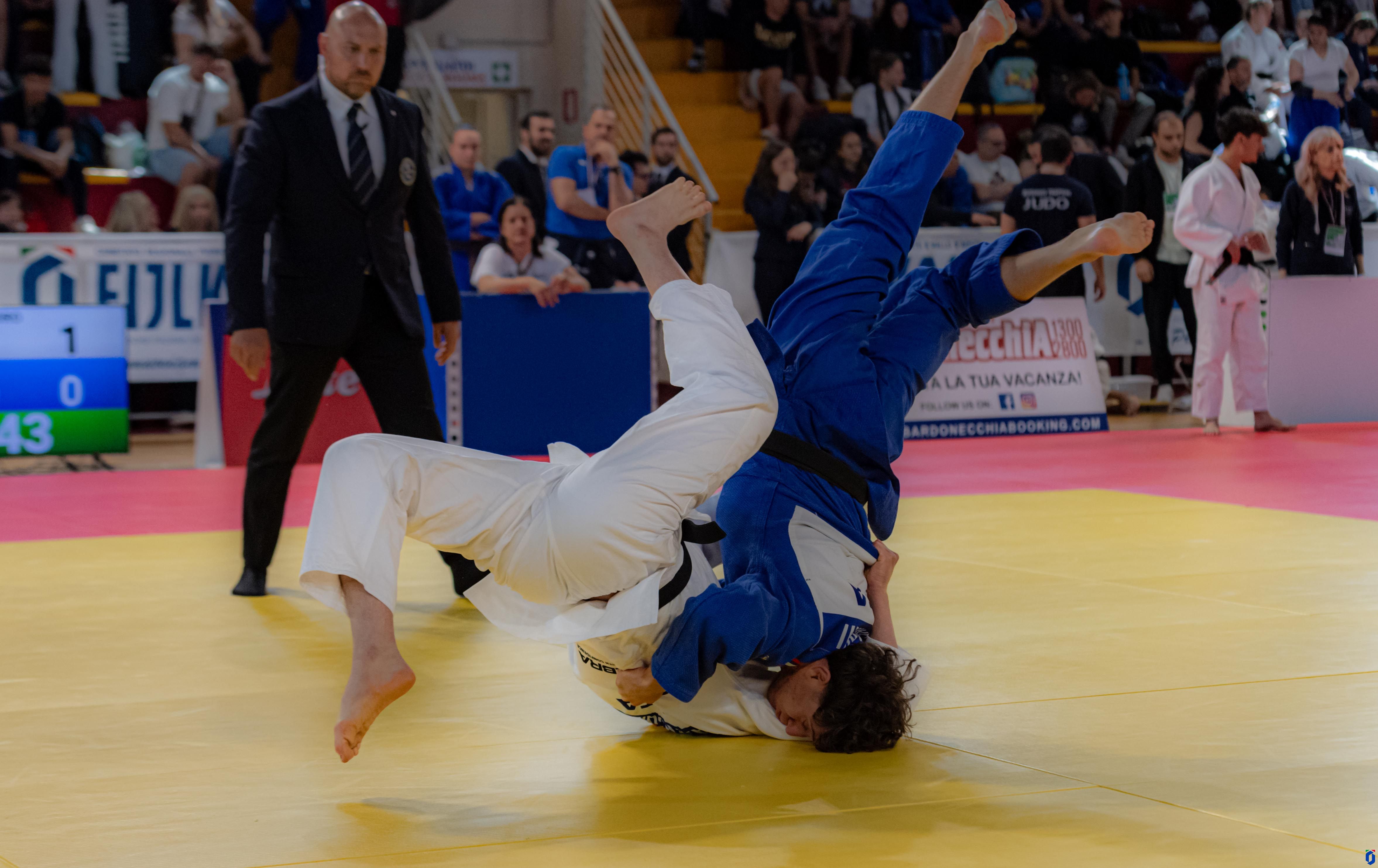 Per quanto riguarda i titoli individuali, tra i maschi, nei 60 kg si è imposto Alessandro Del Re dell’Akiyama, mentre nei 66 kg ha vinto Klajdi Bitri del Samurai Jesi. Nei 73 kg successo ancora per l’Akiyama con Riccardo Roma, negli 81 kg primo posto per Nicola Chiari del KSDK Parma e nei 90 kg vittoria per Mattia Atzori della Pro Recco. Nei 100 kg ha conquistato l’oro George-Eduard Serban dello Shinsei Firenze, mentre nei +100 kg si è imposto Alessandro Rigoni del KSDK Parma.